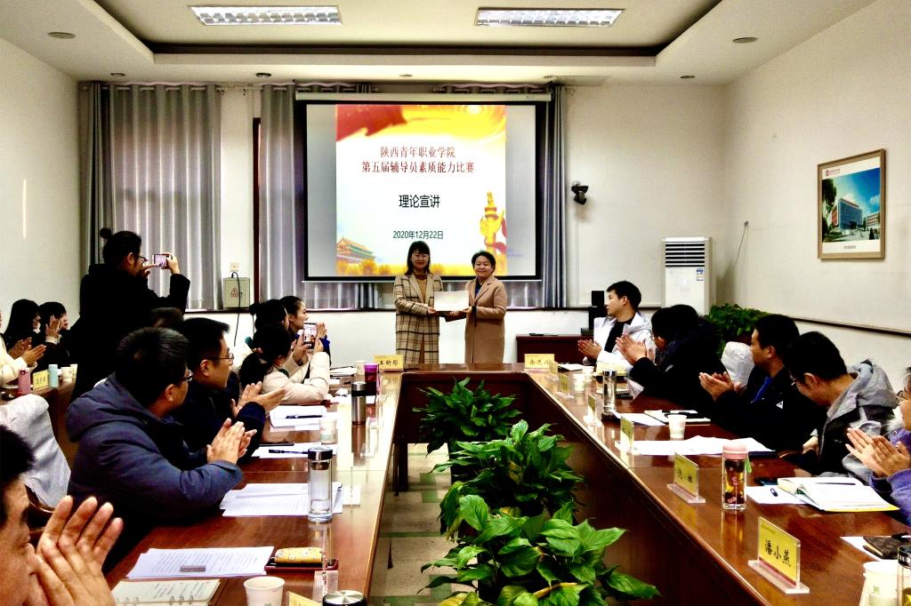 首先,刘晓琴为获得陕西省第七届辅导员素质能力大赛三等奖的辅导员宋晨娇颁发荣誉证书。学生处副处长潘小燕宣读《陕西省教育厅办公室关于做好今冬明春学校学校常见传染病防控工作的通知》;刘国强领学《贺军科在共青团干部教育培训和理论研究工作座谈会上的讲话》。