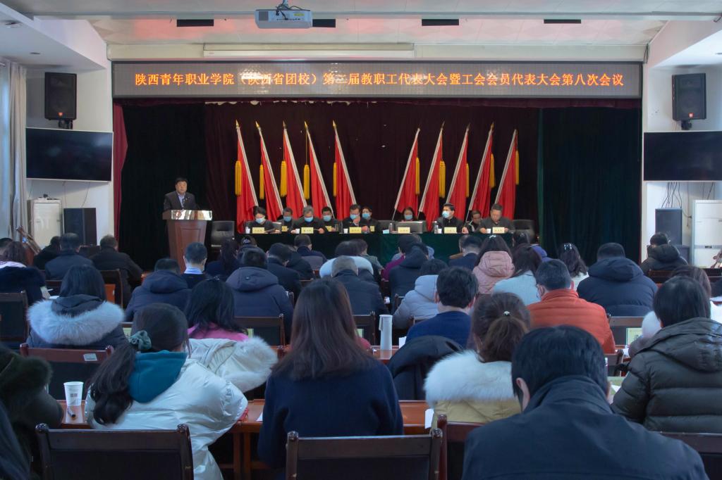 1月25日,院(校)第二届教职工代表大会暨工会会员代表大会第八次会议在含光校区召开。党委书记温锋科、院(校)长刘瑞明,副院(校)长赵兴刚、宁建飞、刘晓琴出席,纪委书记陈永利主持。教代会代表、特邀代表共83人参加。