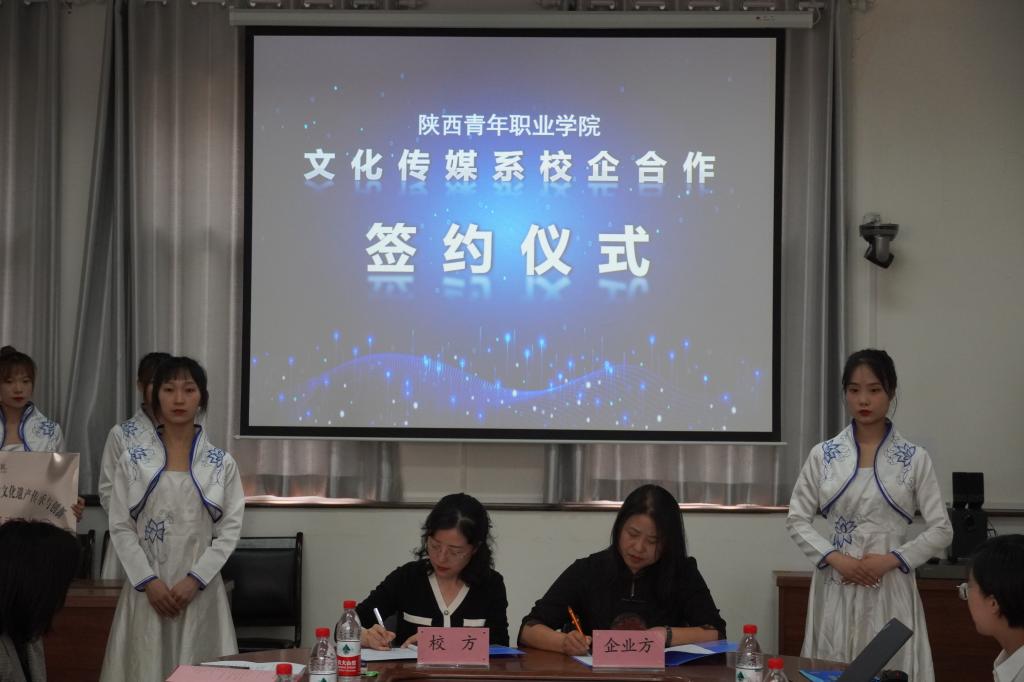 签约仪式上,王瑜代表文化传媒系与红星美凯龙签订了“订单班”合作协议,与铜川耀州窑李家瓷坊有限公司、泾阳县融媒体中心 、陕西华政工程设计有限公司、陕西营火虫品牌营销策划有限公司、西安芹菜网络科技有限公司等五家单位签订了校企合作协议。与会企业代表分别介绍了各自企业情况、行业发展态势以及与文化传媒系系合作的基本情况,并表达了希望通过校企合作达到双赢的良好愿望。
