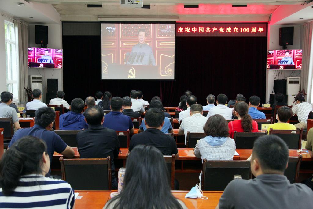 7月1日,庆祝中国共产党成立100周年大会在北京天安门广场隆重举行。中共中央总书记、国家主席、中央军委主席习近平发表重要讲话。院校班子成员、副处级(含助理)以上干部及各党总支、支部全体委员在含光校区集体收看了实况转播。