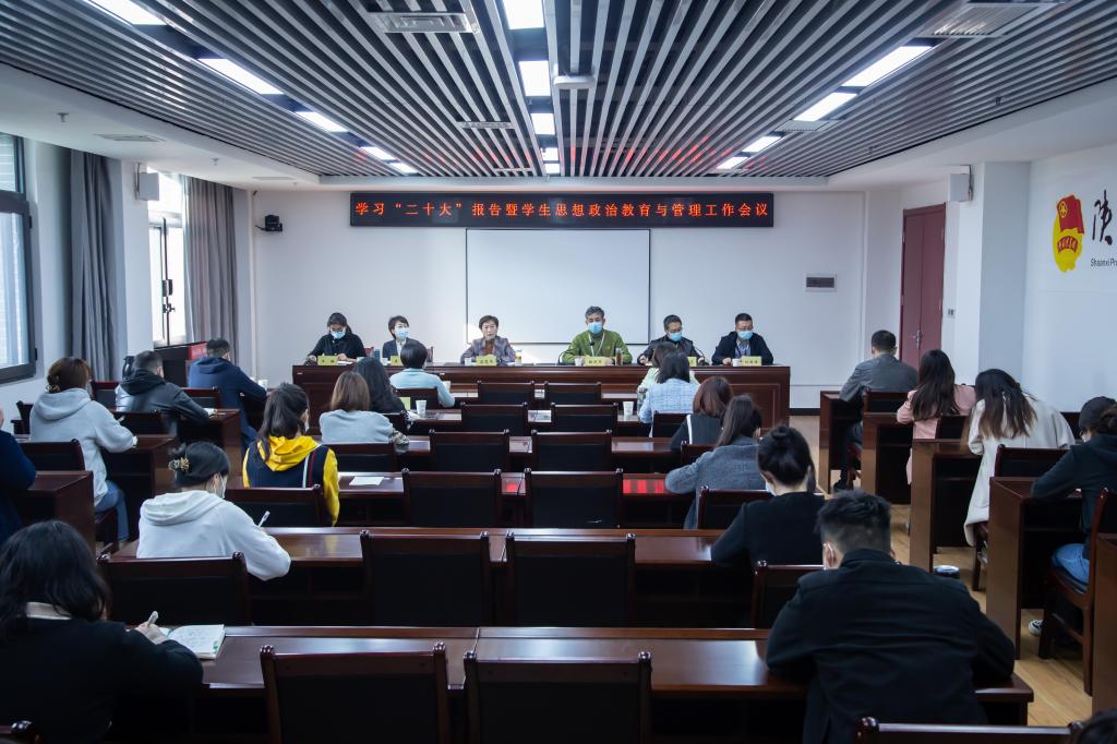 10月21日,校院学工系统学习党的二十大报告暨学生思想政治教育与管理工作会议在长安校区召开。党委副书记梁菀华、副院长韩凯军出席,纪委(监察审计处)副书记(处长)李翼、学生处全体成员、各系学生工作负责人及全体辅导员、班主任、团委干事参加。学生处处长祁志主持。