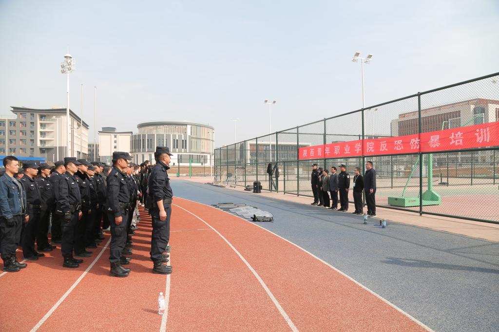 3月7日,保卫处在长安校区操场开展反恐防暴专业化培训及演练活动。副校(院)长宁建飞出席,学生处处长祁志、长安分局巡特警大队副大队长韩俊、杜曲派出所所长薛明、教导员刘利菊、保卫处全体工作人员及200余名学生参加了培训,保卫处处长姚书芳主持活动。