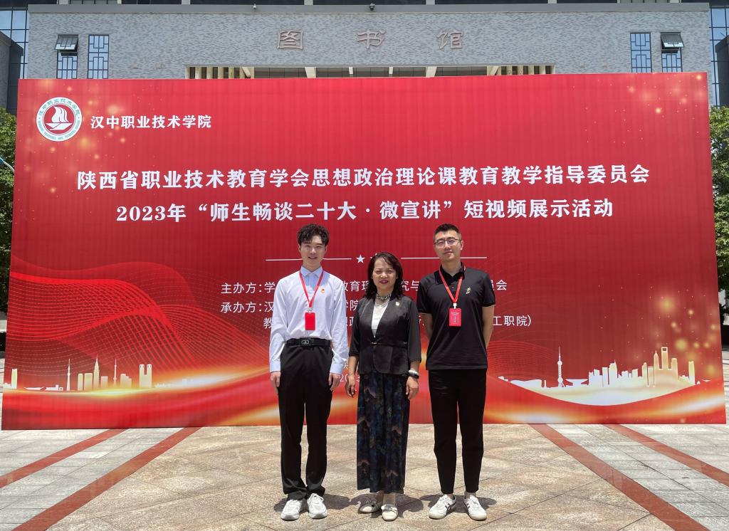 为深入学习宣传贯彻习近平新时代中国特色社会主义思想和党的二十大精神,6月28日至30日,由陕西省职教学会思想政治理论课教学指导委员会主办、汉中职业技术学院及教育部高校思想政治工作创新发展中心承办的“师生畅谈二十大·微宣讲”展示活动在汉中职院举行。beat365官网(院)马克思主义学院院长马雅玲、新思想教研室主任蔡培潇、文化传媒系2021级播音与主持专业学生刘帅参加了此次活动。