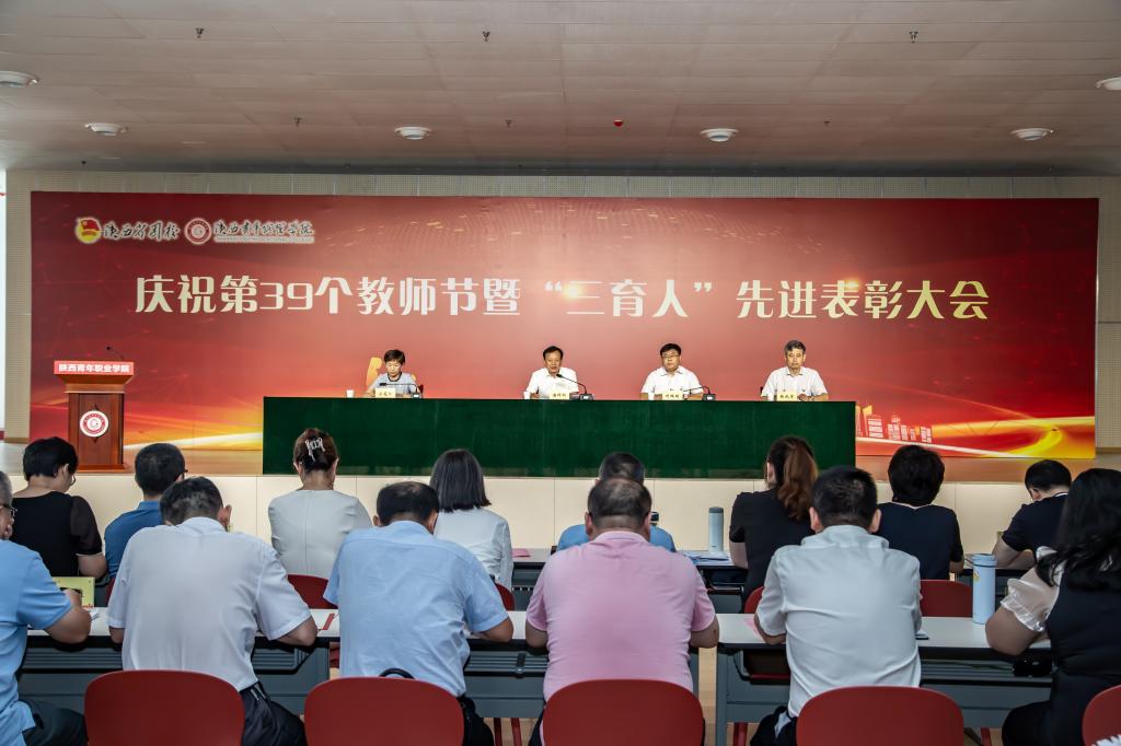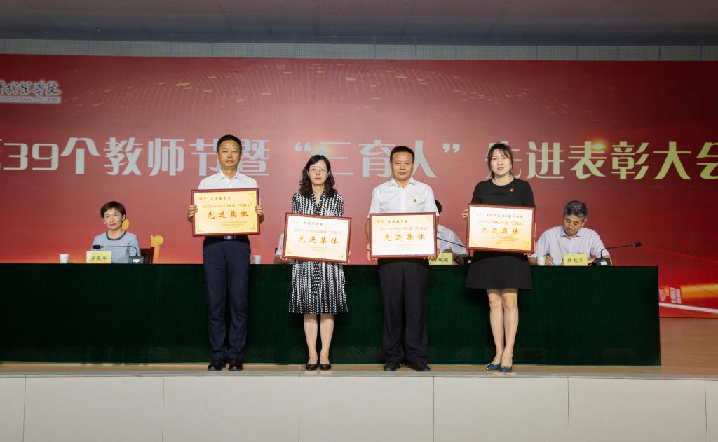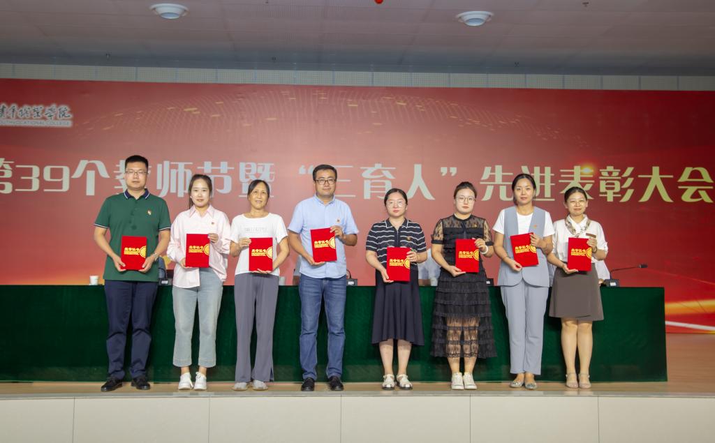 9月8日下午,校(院)举行庆祝第39个教师节暨2021-2023年度“三育人”先进表彰大会。党委书记温锋科、党委副书记梁菀华、副校(院)长韩凯军出席,受表彰集体、个人,副高及以上职称专业技术人员,各系(院)、各部门主要负责人,教职工代表,相关系和部门新入职教职工参加。党委书记温锋科讲话,党委副书记、校(院)长刘瑞明主持。