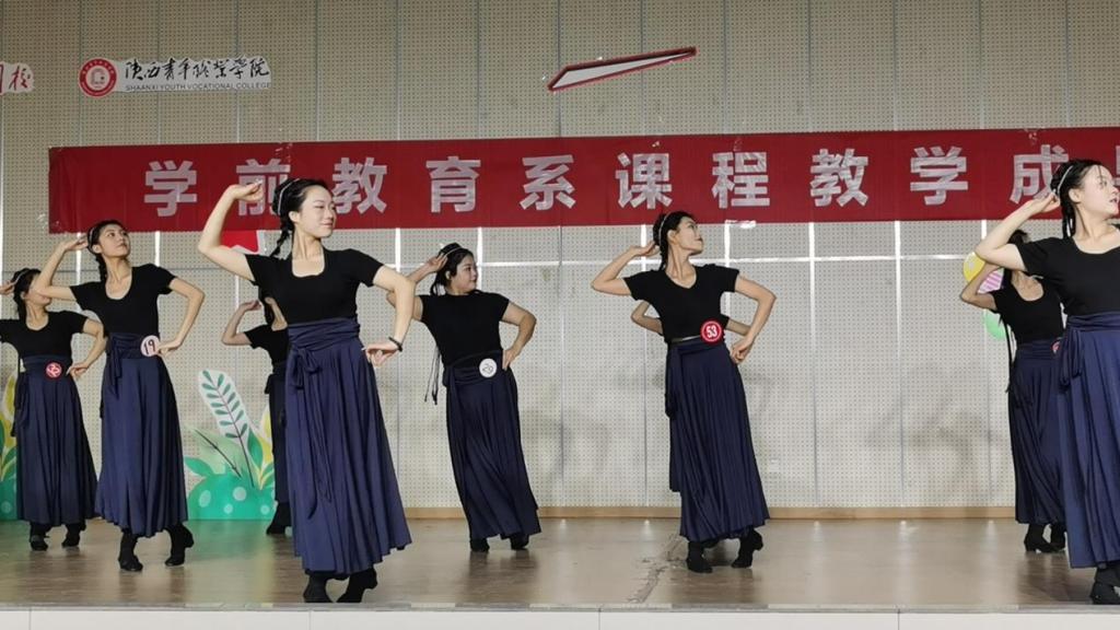 第一部分幼儿园玩教具作品展共展出优秀学生作品一百余件。学生通过奇思妙想将日常生活中随处可见的布、泥、废旧物品、自然材料等转化为供幼儿进行游戏活动、教学活动的玩教具,作品涵盖了语言、艺术、科学、社会、健康等五大领域,将知识的学习融入对玩教具操作之中,能激发幼儿探索知识的兴趣,作品形式多样,极具创造性和教育性,充分展示了学生的设计和动手操作的能力。第二部分幼儿园教育活动设计优秀作品,依托专项技能实训,开发基于职业技能大赛的实训项目,结合幼儿园教育活动设计与指导课程,学生在教师指导下选择主题、绘制课程网络图、撰写教学活动方案,展示出了师范生的基本功。第三部分艺术表现课程展演,结合儿歌弹唱、歌唱基础、形体训练、民族民间舞等专业核心课程期末考核,选拔优秀学生作品进行展演,展演中涵盖了舞蹈基本功组合展示、民族民间舞组合、艺术歌曲演唱、儿童歌曲表演唱、儿歌弹唱等,为学生搭建舞台展演的平台既是对艺术类课程教学成果的展示,也是对教师教育教学水平的检验。