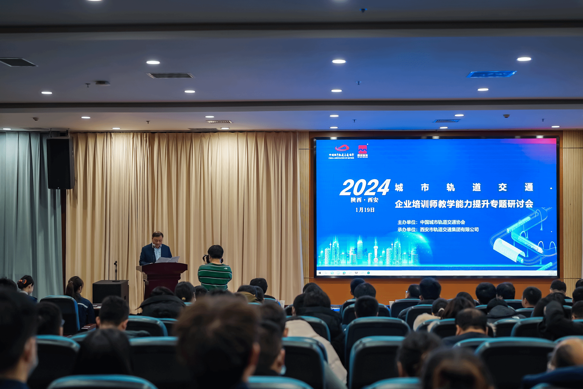 1月19日—20日,由中国城市轨道交通协会主办、西安市轨道交通集团有限公司承办的城市轨道交通企业培训师教学能力提升专题研讨会在西安召开,来自16个城市、25家轨道交通行业企业和院校的260余名教育培训领域同仁齐聚渭河车辆段综合实训基地。学院副院长韩凯军带领交通运营服务系主任韩洲雄、副主任邵华及轨道交通教研室全体专任教师参加了研讨会。