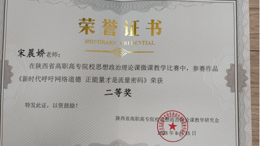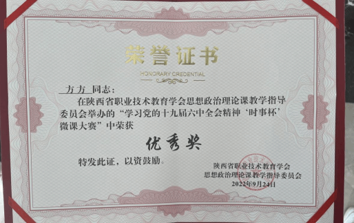 强化以赛促教,帮助教师成长——五年来,教师分别荣获共青团陕西省委“清廉说”演讲比赛三等奖、优胜奖、陕西高校思政课教案比赛二等、三等奖,陕西高校第五批思想政治教育研究项目研究成果优秀奖,陕西省高职高专院校思想政治理论课微课教学比赛二等奖,陕西省高职高专院校“师生畅谈二十大 微宣讲”优秀奖,beat365官方网站教学成果特等奖,beat365官方网站教学能力大赛二等、三等奖,获评beat365官方网站年终考核“创新奖”等。先后涌现出全国高校思政课教学骨干1人,陕西高校思政课教师“大练兵”教学标兵2人、教学能手5人、教学团队能手1个等。