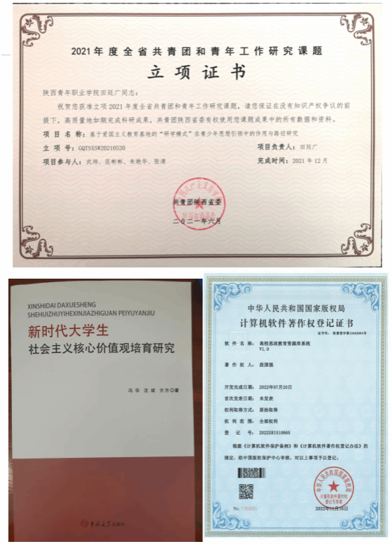 提升科研能力,打通教研动脉——“教而不研则浅,研而不教则空。”科研是促进教师发展的有效途径,也是马克思主义学院高质量发展的不懈动力。五年来,马克思主义学院教科研硕果累累。先后获批陕西高校第五批思想政治教育研究项目等省级项目10余项,厅局级项目20余项,参与30余项,发表学术论文近百余篇,其中高水平论文占比30%,编写专著4部,先后有四项发明专利获国家知识产权局授权。