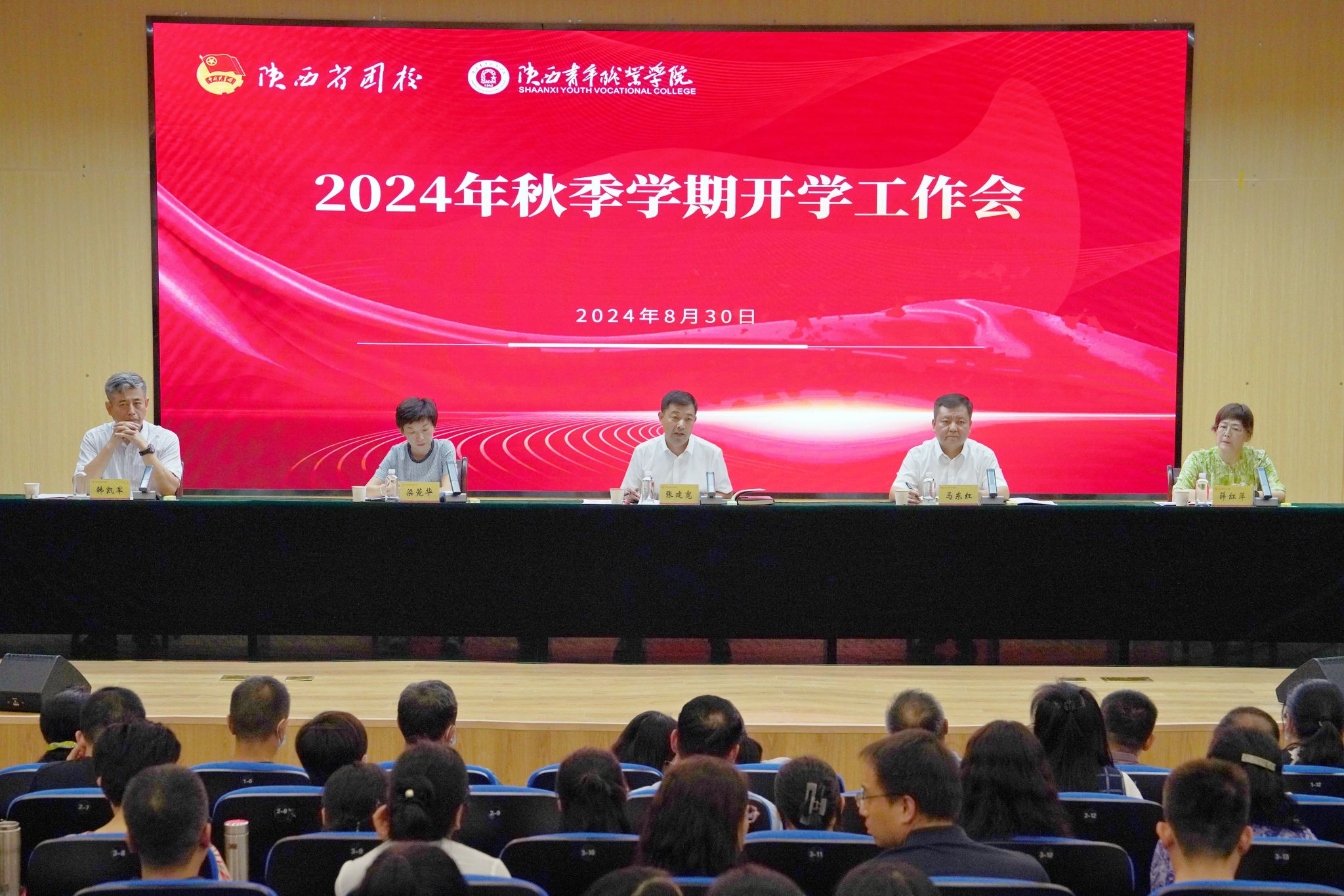 8月30日,校(院)2024年秋季学期开学工作会在长安校区召开,领导班子成员出席,党委副书记梁菀华主持,各系(院)、各部门主要负责人,副处(含助理、协助)以上干部,副高级以上职称专业技术人员,各系(院)教研室主任、教学秘书、辅导员参加。