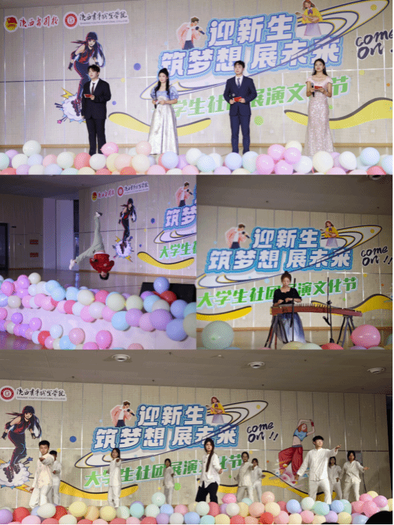 10月24日,为热烈庆祝新中国成立75周年,团委开展“迎新生 筑梦想 展未来”社团文化展演活动。校长马东红、数字经济与数字技术系副主任庄绪强、小学教育系党总支副书记高鹏、学前教育系副主任朱凯利、保卫处处长助理龚成与团委书记王珊、副书记薛江泉、各社团指导教师参加。600余名学生现场参与,430余人通过抖音直播线上观看。
