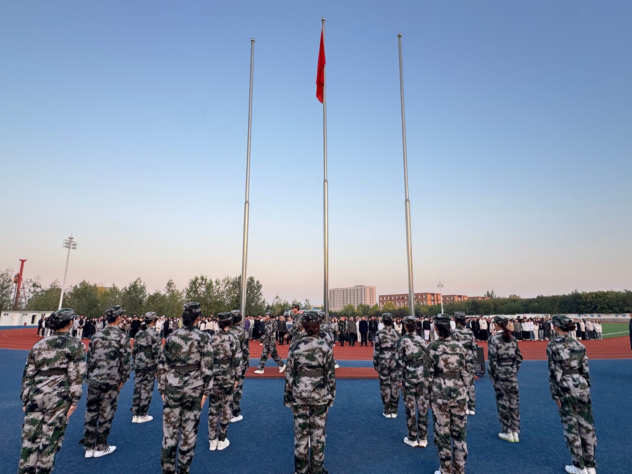 10月28日,为热烈庆祝新中国成立75周年,大力弘扬爱国主义精神,深入贯彻《中华人民共和国国旗法》,推动学校国防教育和思想政治教育走深走实,不断激励师生为强国建设矢志奋斗,学校在长安校区操场举行升国旗仪式。校纪委书记薛红萍出席,全体值班干部、辅导员,国旗护卫队成员及各系2024级学生参加。仪式由校社团工作部干部杨帧婷同学主持。