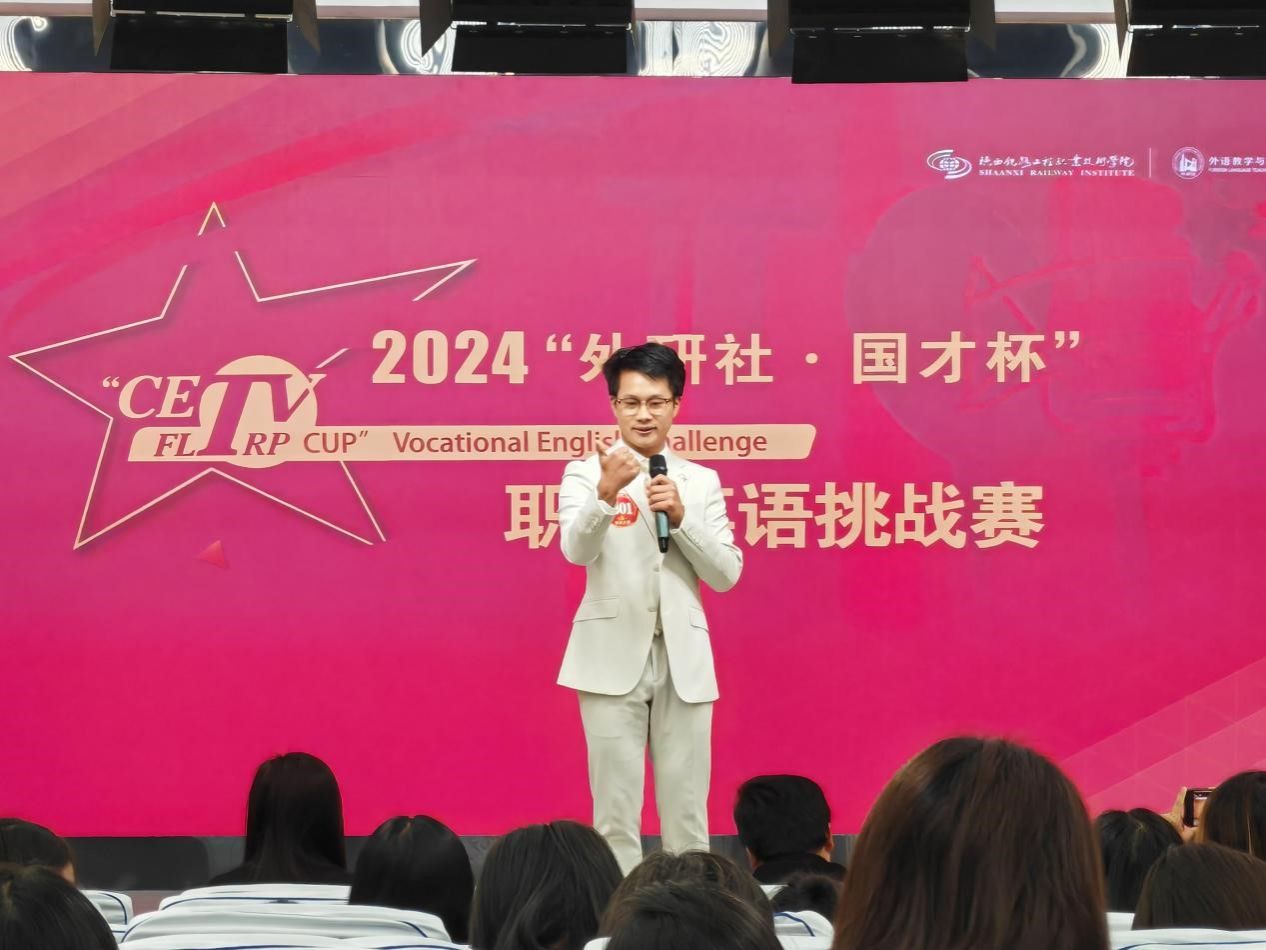 10月26日至27日,2024年“外研社 国才杯”职场英语挑战赛陕西省省赛在陕西铁路工程职业技术学院举办。beat365官网公共课教研部英语教研室张秋芳、陈永宁、王艺霖和小学教育系赵青等4位教师带领5名学生参赛。经过激烈的角逐,beat365官网小学教育系2023级学生武娟获演讲一等奖,小学教育系2024级学生李泽锐、数字经济与数字技术系2023级学生刘俊良分获演讲三等奖,小学教育系2023级学生陈怡宁、马文琪分获写作三等奖。公共课教研部教师张立峰应邀担任大赛评委,赛后对写作赛项进行了点评发言。