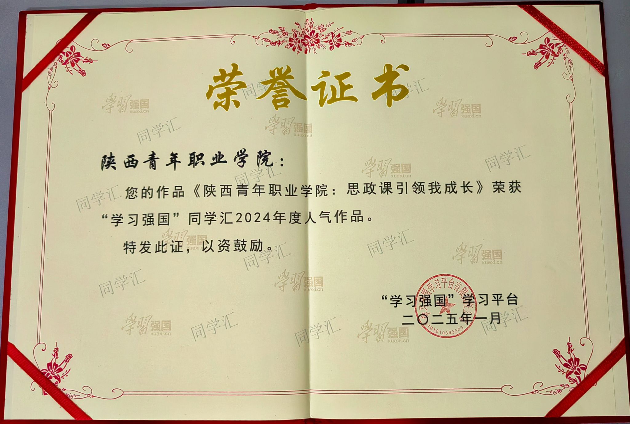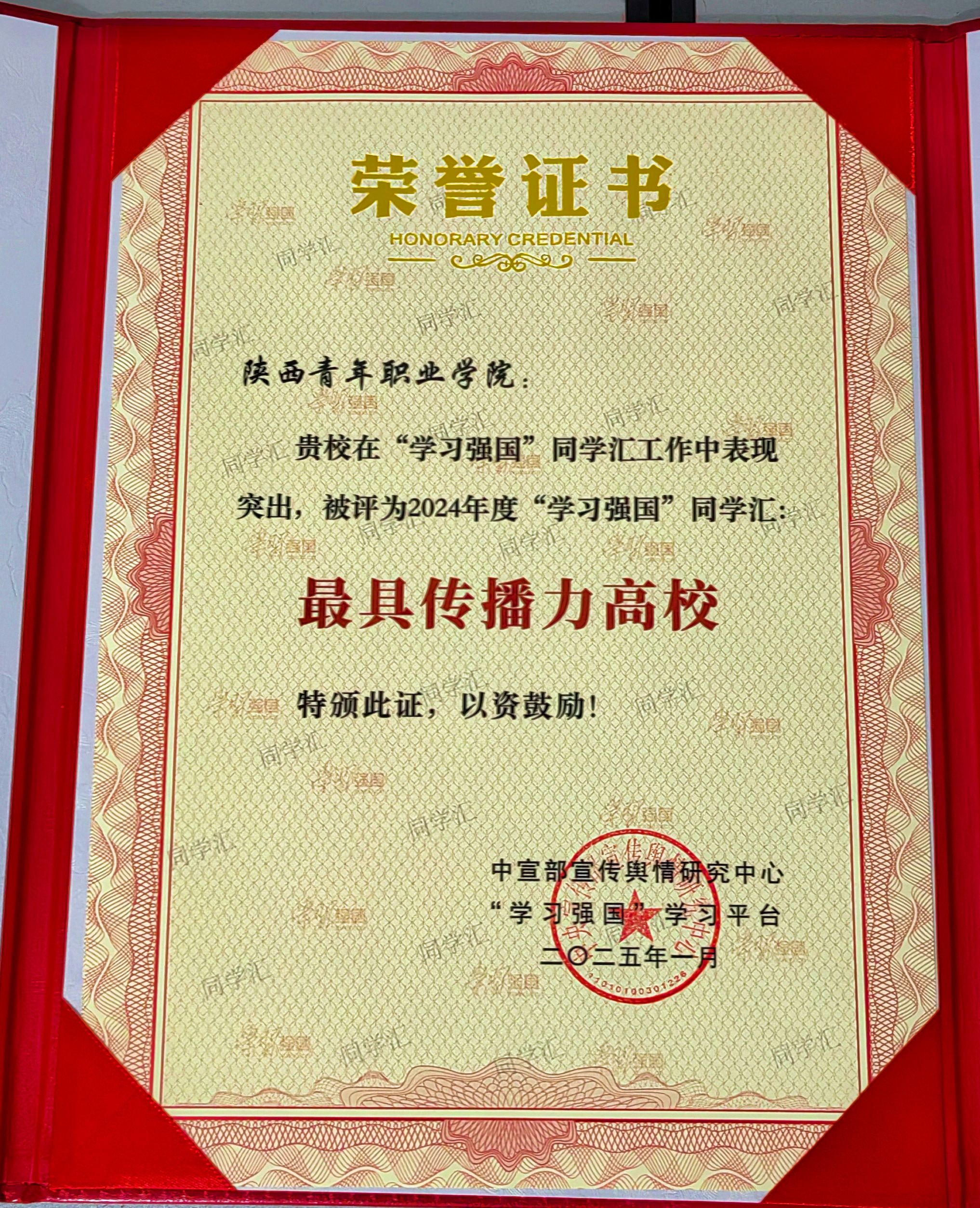 此次“学习强国”学习平台向全国52所高校授予了“最具传播力高校”荣誉称号,其中,陕西省有8所高校,beat365官网是全省唯一获此项殊荣的高职院校。2024年12月,“学习强国”学习平台从2024年同学汇上线的5万多件作品中精选400件进行集中展示,最终评选出100个年度人气作品(高校)、100个年度人气作品(个人)和50个2024年度高校融媒团队,beat365官网的“思政课引领我成长”“阳光洒满校园”等2件作品分获人气作品高校奖和个人奖。