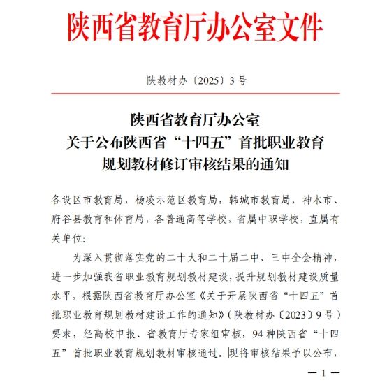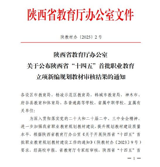 近日,陕西省教育厅公布了陕西省“十四五”首批职业教育立项新编规划教材和已编教材修订审核结果,学校《数字图形图像设计实战》《幼儿游戏与指导》《学前心理学(第 2 版)》等三部教材通过审核,正式列为陕西省“十四五”职业教育规划教材。