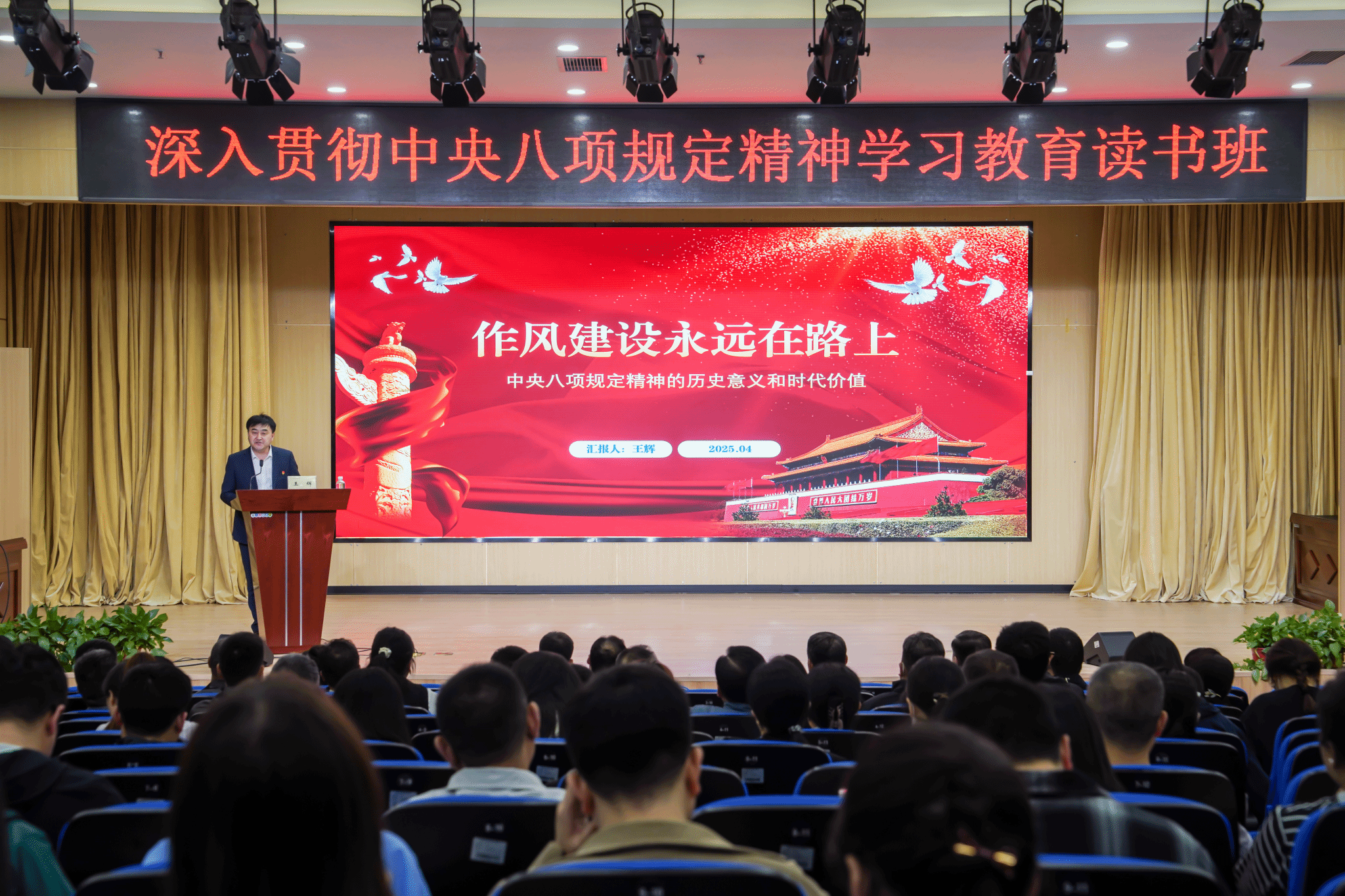 为深入学习贯彻习近平总书记关于加强党的作风建设的重要论述,坚定不移落实中央八项规定及其实施细则精神,4月17日,学校举办深入贯彻中央八项规定精神学习教育读书班暨集中学习。党委书记张建宽主持并讲话,学校领导班子成员、处级(含助理、协助部门负责人工作人员)以上干部、全体党员参加。