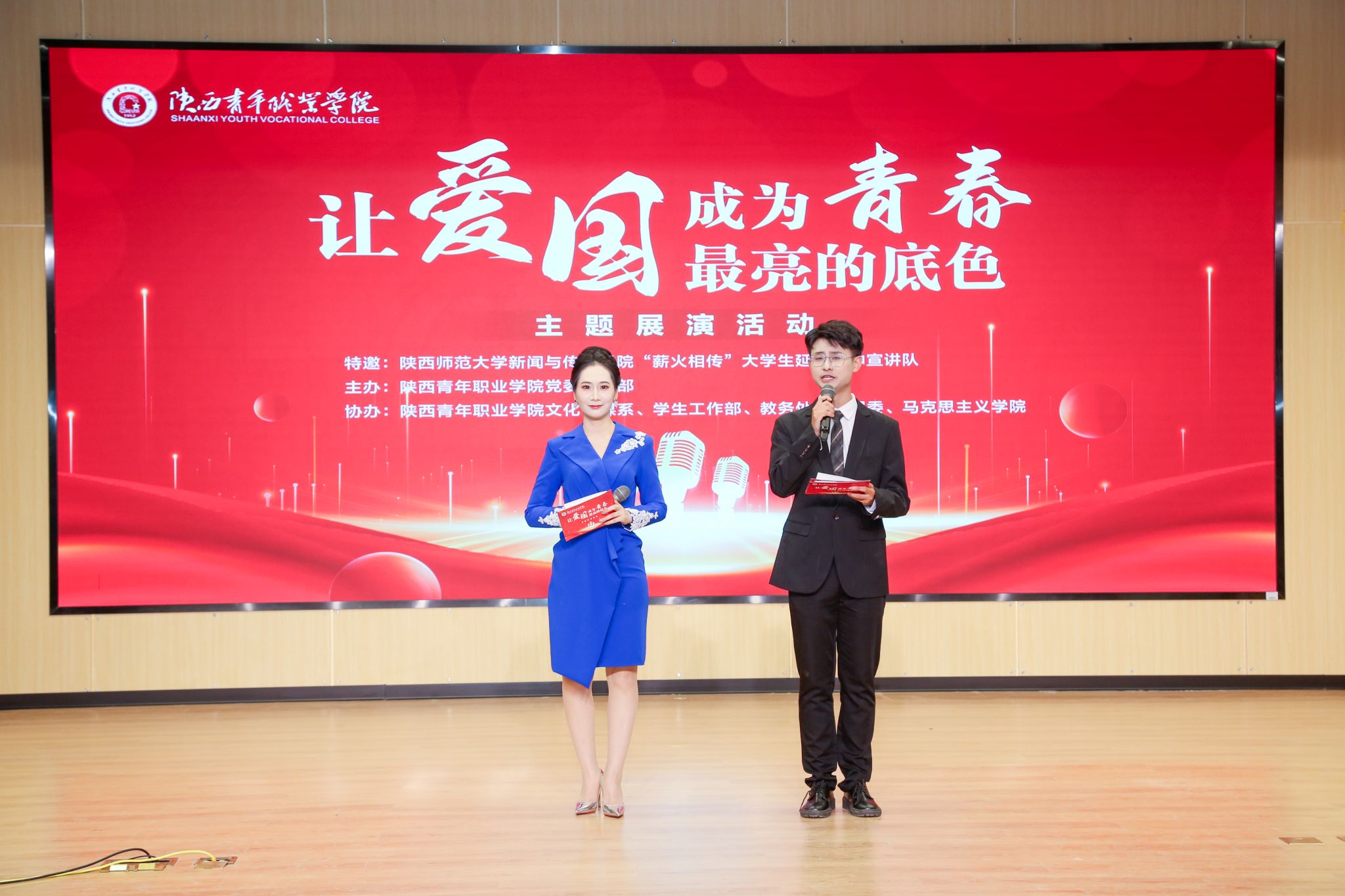 5月28日晚,beat365官网在长安校区报告厅举办“让爱国成为青春最亮的底色”主题展演活动。活动特邀陕西师范大学新闻与传播学院“薪火相传”大学生延安精神宣讲队参演。