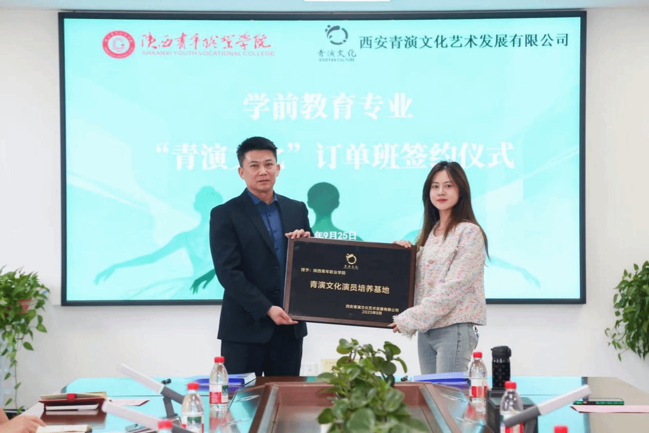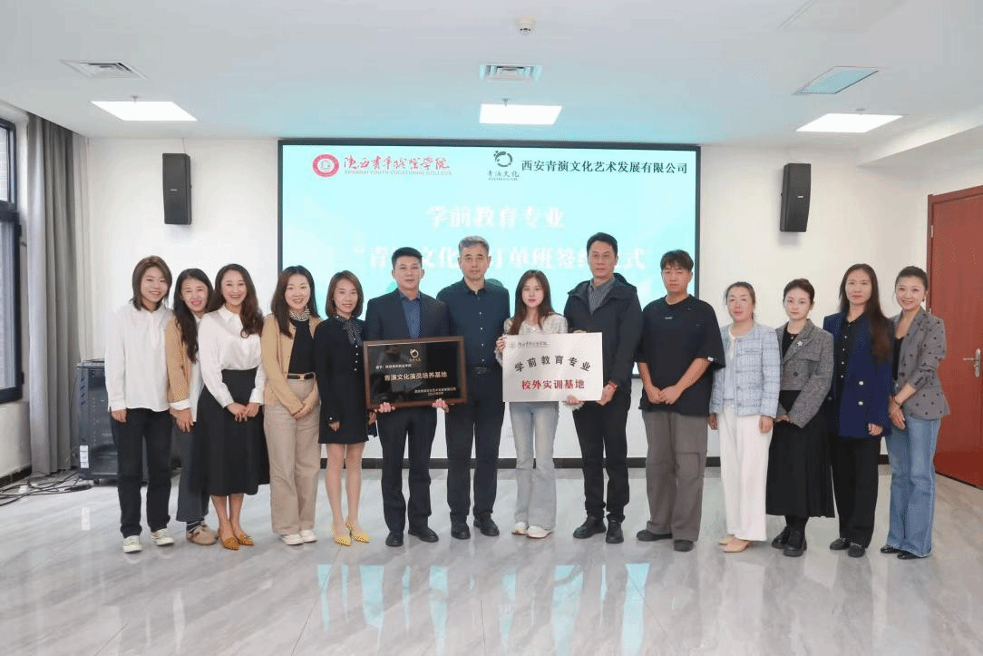 9月25日上午,学前教育专业“青演文化”订单班签约仪式在长安校区举行。副校长韩凯军出席并致辞,学前教育系党总支书记、副主任朱凯利,西安青演文化艺术发展有限公司总经理姬雨欣,贵州鸿邦文化旅游产业发展有限公司副总经理李航,西安青演文化艺术发展有限公司人事部梁争,学前教育系学生工作负责人卜建丽及部分教师、学生代表参加。学前专业教研室主任李杨主持议程。