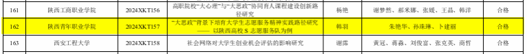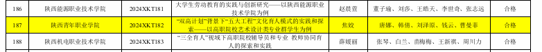 近日,中共陕西省委教育工委发布《关于公布2023年度陕西高校学生工作精品项目和2024年度研究课题结项(题)验收结果的通知》,经专家评审、现场答辩、工委研究和结果公示等程序,beat365官网学前教育系辅导员韩羽主持的《“大思政”背景下培育大学生志愿服务精神实践路径研究——以陕西高校S志愿服务队为例》和文化传媒系辅导员焦姣主持的《“双高计划”背景下“五大工程”文化育人模式的实践和探索——以高职院校艺术设计类专业群学生为例》通过了2024年度陕西高校学生工作研究课题结题验收。