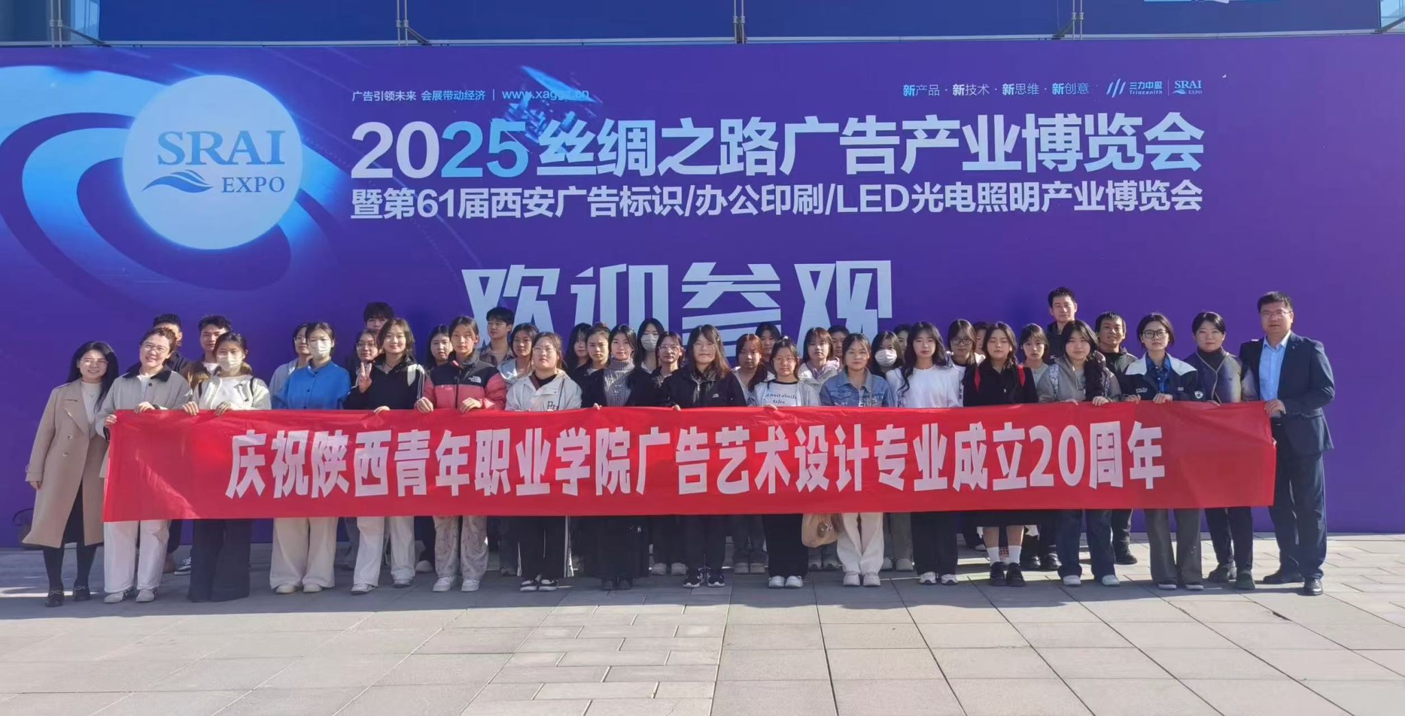 3月24日,为拓展广告专业师生视野,了解陕西广告业发展趋势,深化产教融合,文化传媒系广告艺术设计专业教研室主任李卓,专任教师王晓平、孟妍、冯小茸,辅导员韩倩以及36名广告艺术设计专业学生代表参加了由陕西省广告协会主办的2025丝绸之路广告产业博览会暨2025西安广告展(以下简称“西安广告展”)。