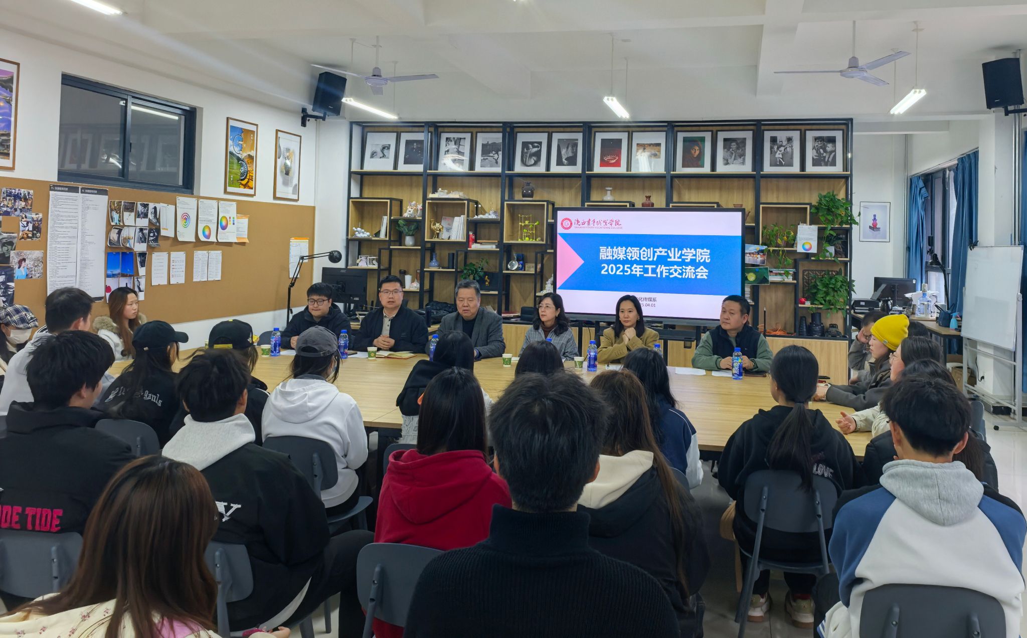 4月1日,文化传媒系在长安校区举办融媒领创产业学院(以下简称“产业学院”)2025年工作交流会。本次会议以“总结成果、谋划新篇”为主题,全面回顾产业学院已有项目的实践经验,并围绕新项目“广电喵”开展了研讨。文化传媒系党总支书记、副主任王瑜,陕西广电融媒体集团移动电视频道总经理助理王绪,陕西广电融媒体集团移动电视频道项目主管徐豪,新闻教研室主任唐毅,主播教研室主任杨琦,文化传媒系教师张景园、萧淇瑞、冯小茸、安琪,以及学生代表共40余人参加了本次交流会。广告教研室主任李卓主持本次会议。
