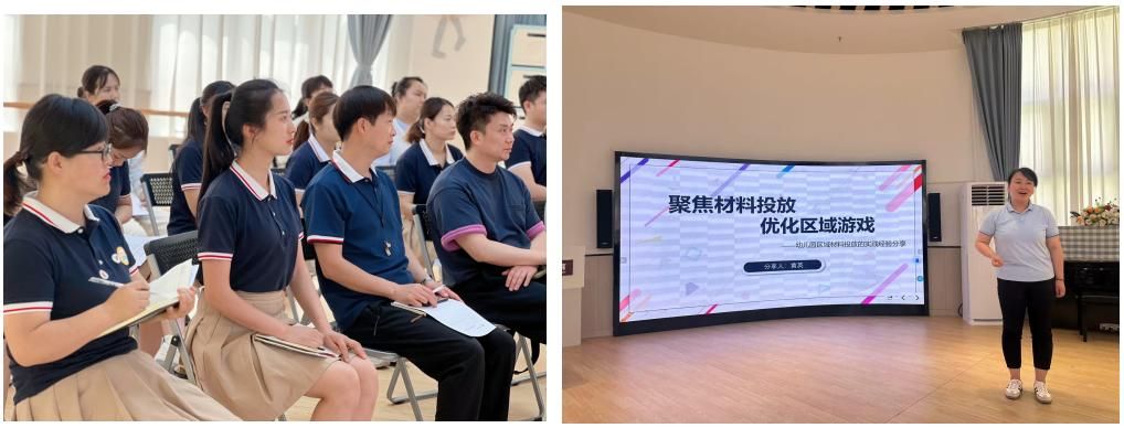 黄英以“聚焦材料投放 优化区域游戏”为题,围绕什么是区域游戏、区域游戏的价值是什么、如何为区域游戏投放材料三个方面进行了专题分享,结合具体的幼儿园案例深入浅出地分析了如何在幼儿园设计区域游戏和投放游戏材料,并与在场的教师就区域游戏的组织进行热烈的讨论和互动。