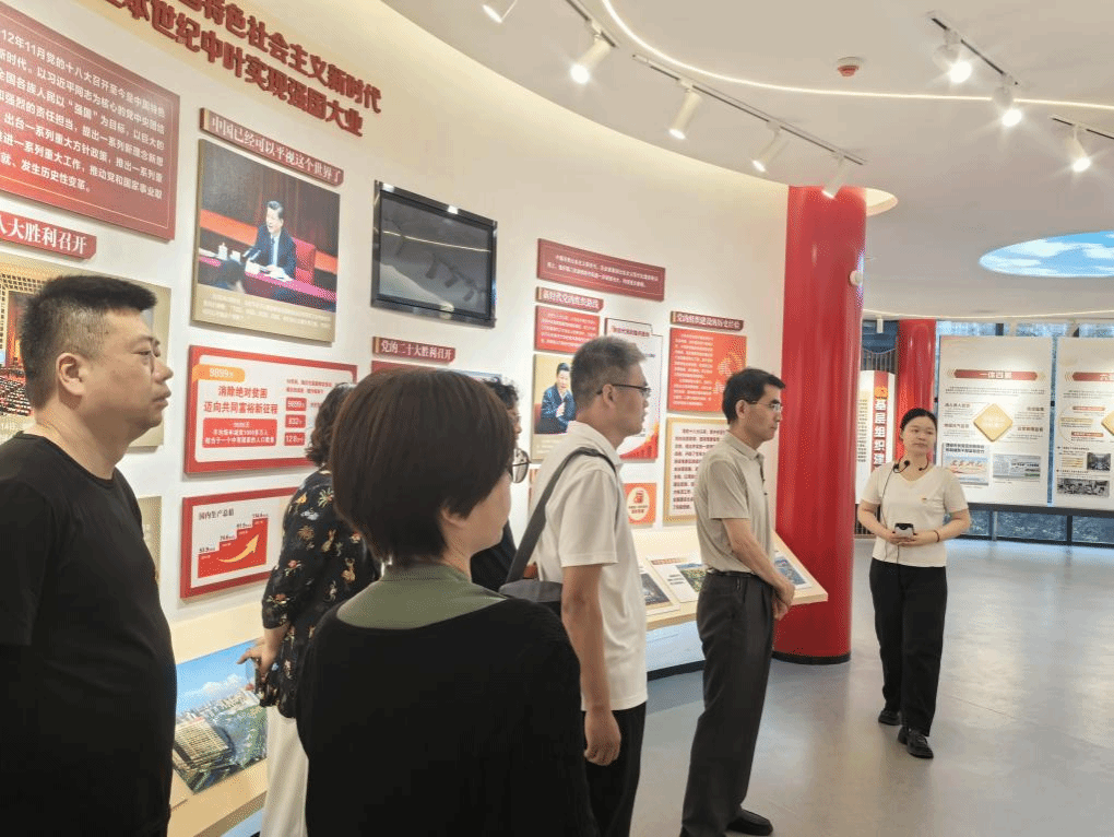 在讲解员的带领下,全体党员依次走进“不忘初心”“实干赋能”“奋楫争先”三大主题展厅,开启了一场跨越时空的对话。馆内300余张历史图片、100余件实物展品及1.2万字详实史料,生动展现了长安区从第一个党支部建立到脱贫攻坚、和美乡村建设的奋斗历程。