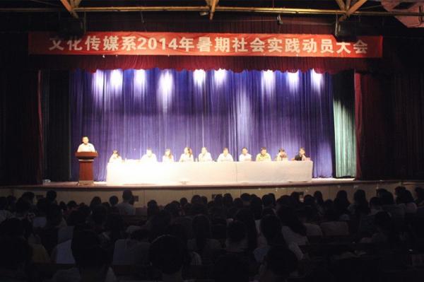 6月26日,文化传媒系在青华校区学生活动中心召开2014年学生暑期社会实践动员大会。系党总支书记、主任贺延林,系主任助理吕子静,各教研室及团工委负责人,2013级全体学生参加会议。系主任助理张晓娟主持会议。