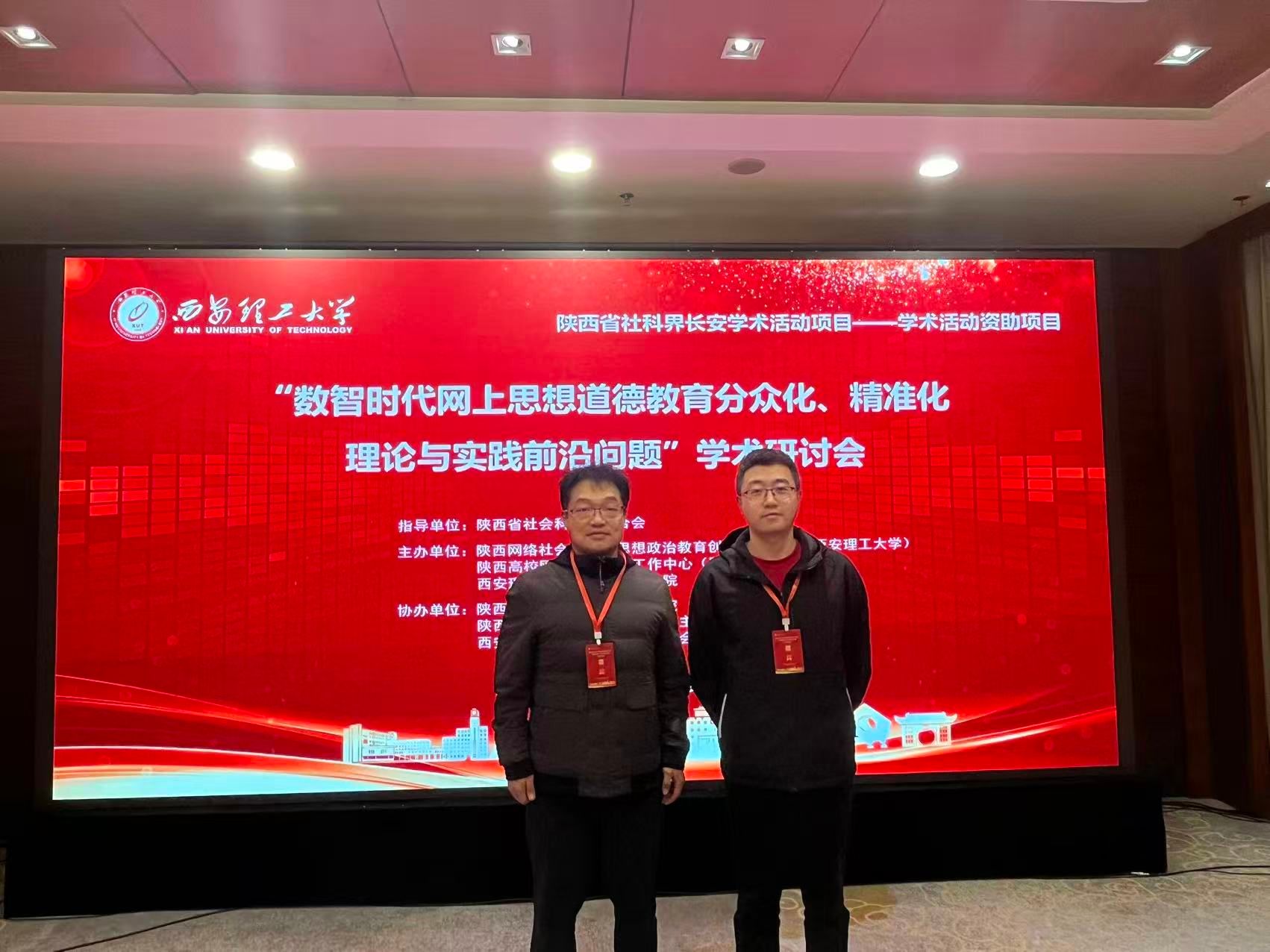 11月1日上午,数智时代网上思想道德教育分众化精准化理论与实践前沿问题学术研讨会在西安召开。beat365官网马克思主义学院新思想教研室主任蔡培潇、教师师壮壮参加。