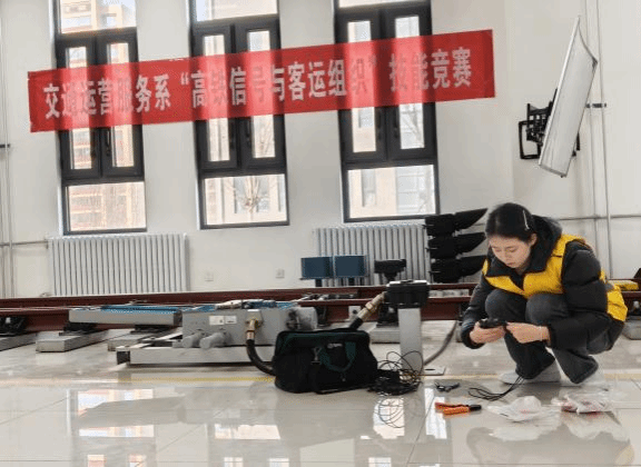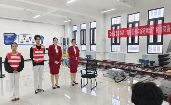 12月24日,由陈碧英、王明起指导的“高铁信号与客运组织”竞赛在轨道交通综合实训室举行。竞赛以团队形式进行,参赛选手通过角色扮演、分工协作完成车站客运服务作业和信号转撤器故障模拟操作。最终,2024级高铁三班王楠团队获得一等奖、2024级高铁二班赵文艳团队获得二等奖、2024级高铁一班王菁菁团队、2024级高铁二班苟瑞敏团队获得三等奖。