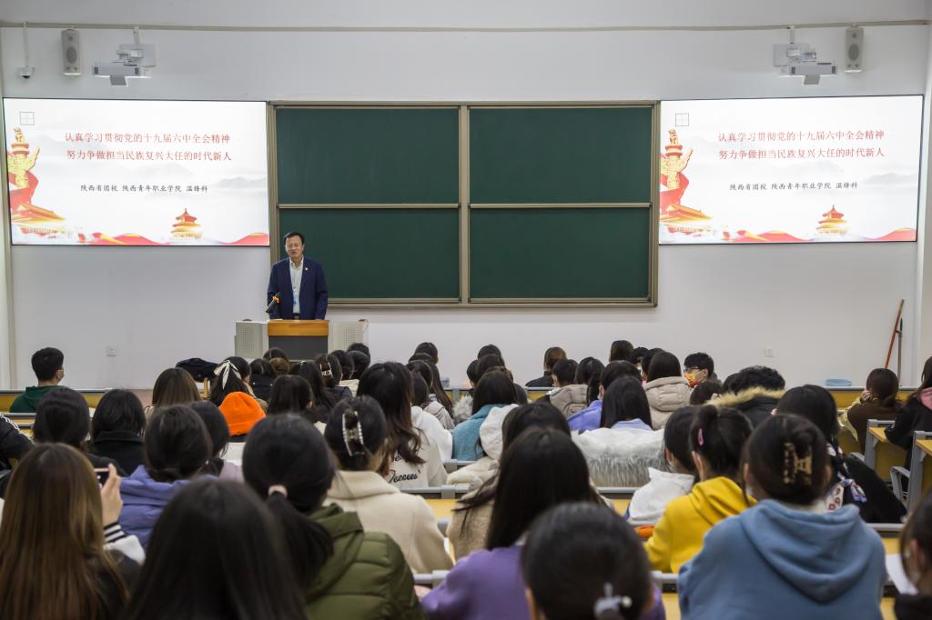 接着,温锋科着重围绕习近平总书记在党的十九届六中全会上的重要讲话精神和《中共中央关于党的百年奋斗重大成就和历史经验的决议》,重点阐明召开党的十九届六中全会的重大意义,系统讲述党百年奋斗的初心使命、辉煌历程和重大成就,重点讲解中国特色社会主义新时代历史性成就和历史性变革,深入阐释党百年奋斗的历史意义和历史经验,为广大师生深入学习领会党的十九届六中全会精神作了有力动员。在讲课中,温锋科结合我院学生的学习生活实际,注重将理论与实际相结合,增强了课堂讲授的针对性、实效性。温锋科指出做担当民族复兴大任的时代新人要有爱国情怀,要把报效祖国、服务人民当作一种理想;要有社会责任感,把崇德向善、奉献社会当作一种追求;要有创新精神,把敢于开拓、勇于创新当作一种责任;要有实践能力,把顽强拼搏、艰苦奋斗当作一种锤炼。