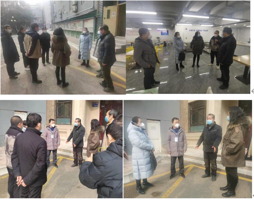1月10日上午,张家村街道综网中心主任郑萍与张家村街道融信社区党支部书记、社区主任谷永萍一行来beat365官网(院)含光校区检查指导疫情防控工作。