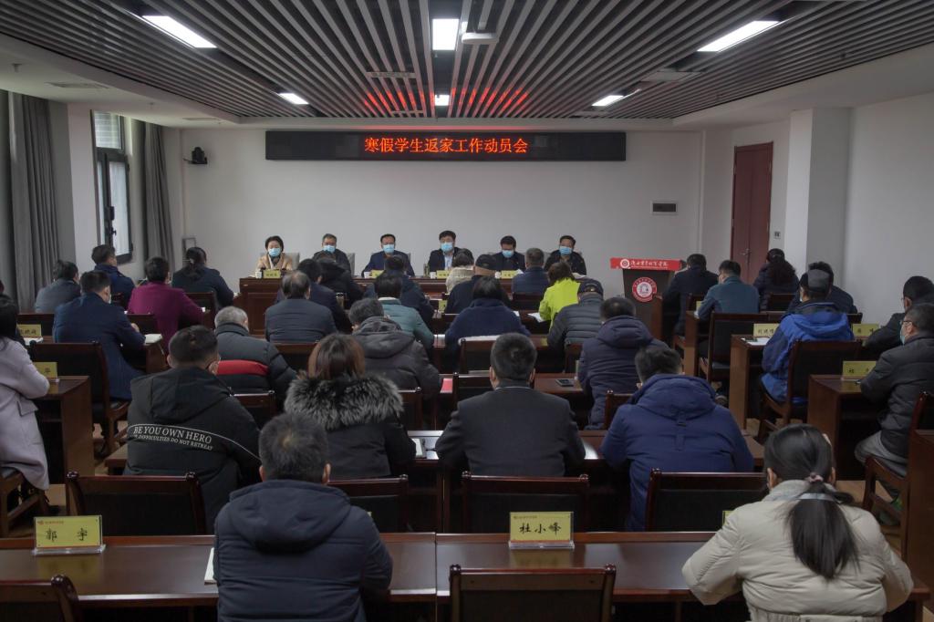 院长刘瑞明传达了属地疫情防控指挥部和省教育厅关于beat365官网学生寒假返家工作方案的批复意见,并从“高度重视、精心组织;强化对接、畅通信息;宣传到位、确保安全;统筹兼顾、保障有力”等四个方面对进一步做好学生返家工作提出要求。