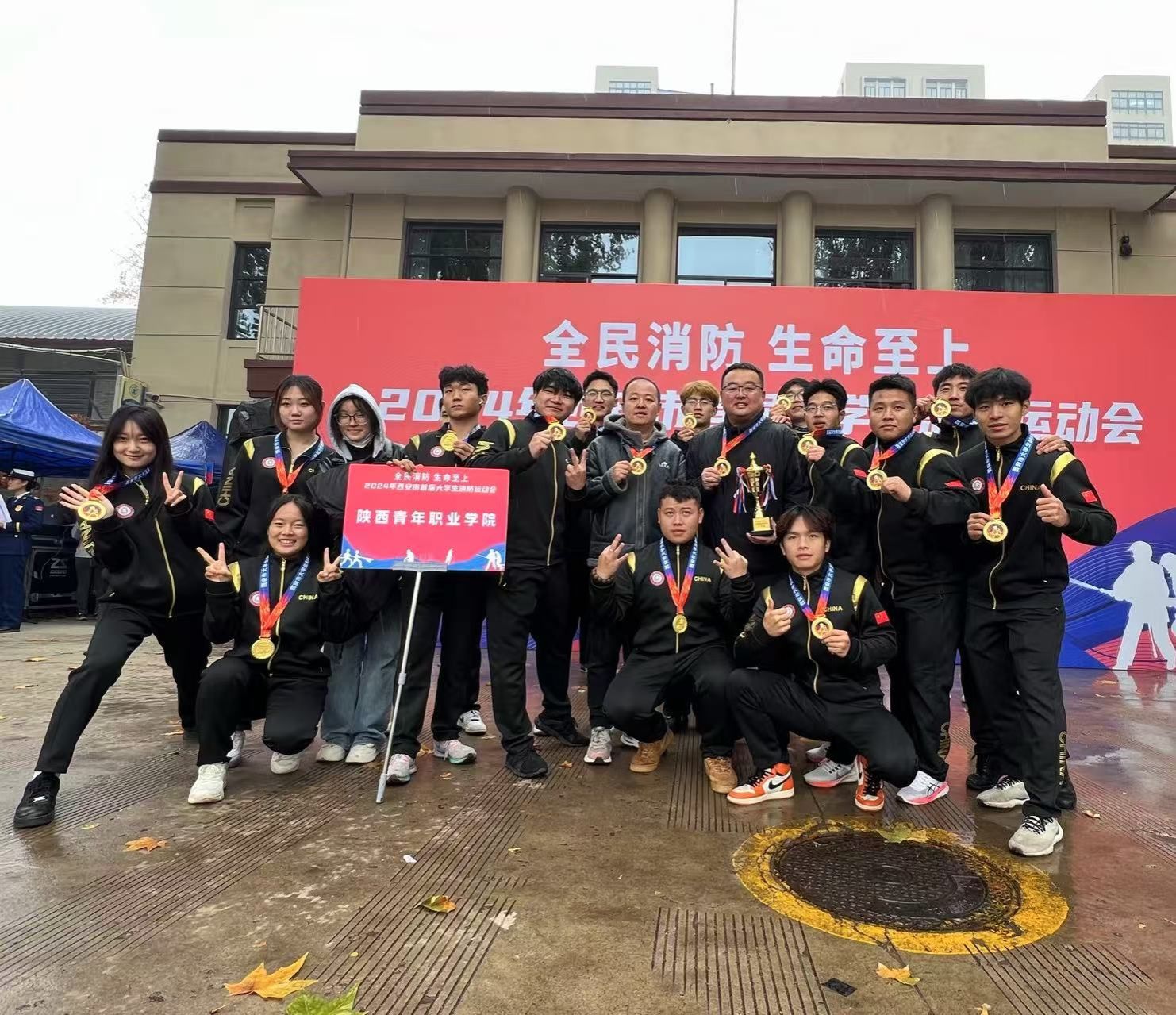 11月23日上午,由西安市消防救援支队主办,西安交通大学、碑林区消防救援大队承办的西安市首届大学生消防运动会举行。beat365官网学生志愿消防队在保卫处处长助理龚成、消防工作管理人员谢思聪带领下积极参加,并获团体二等奖。