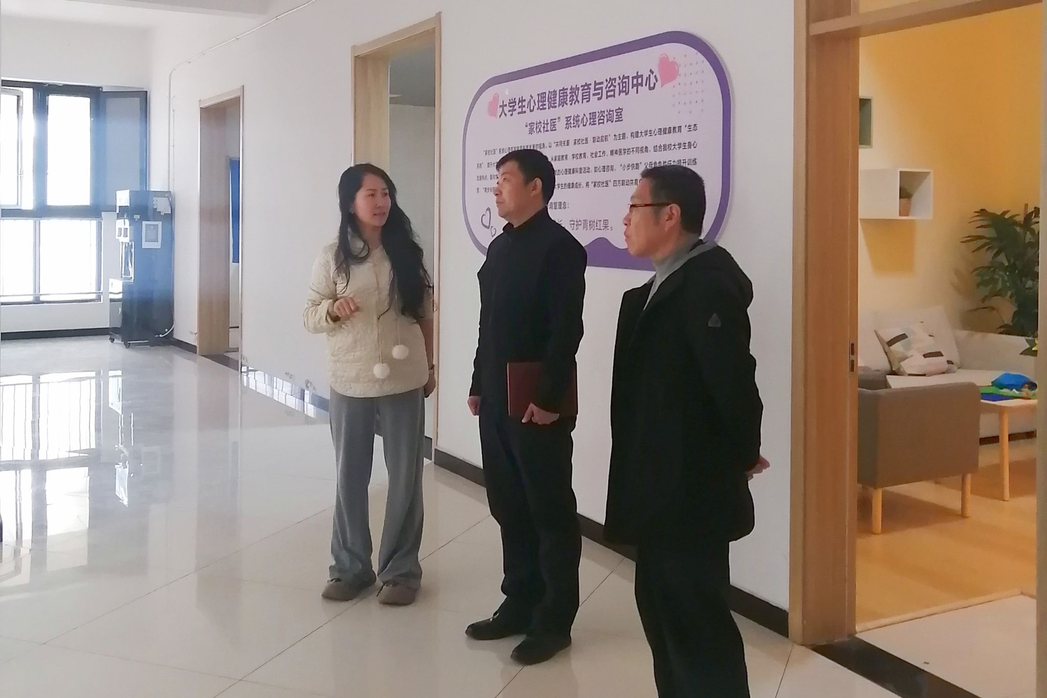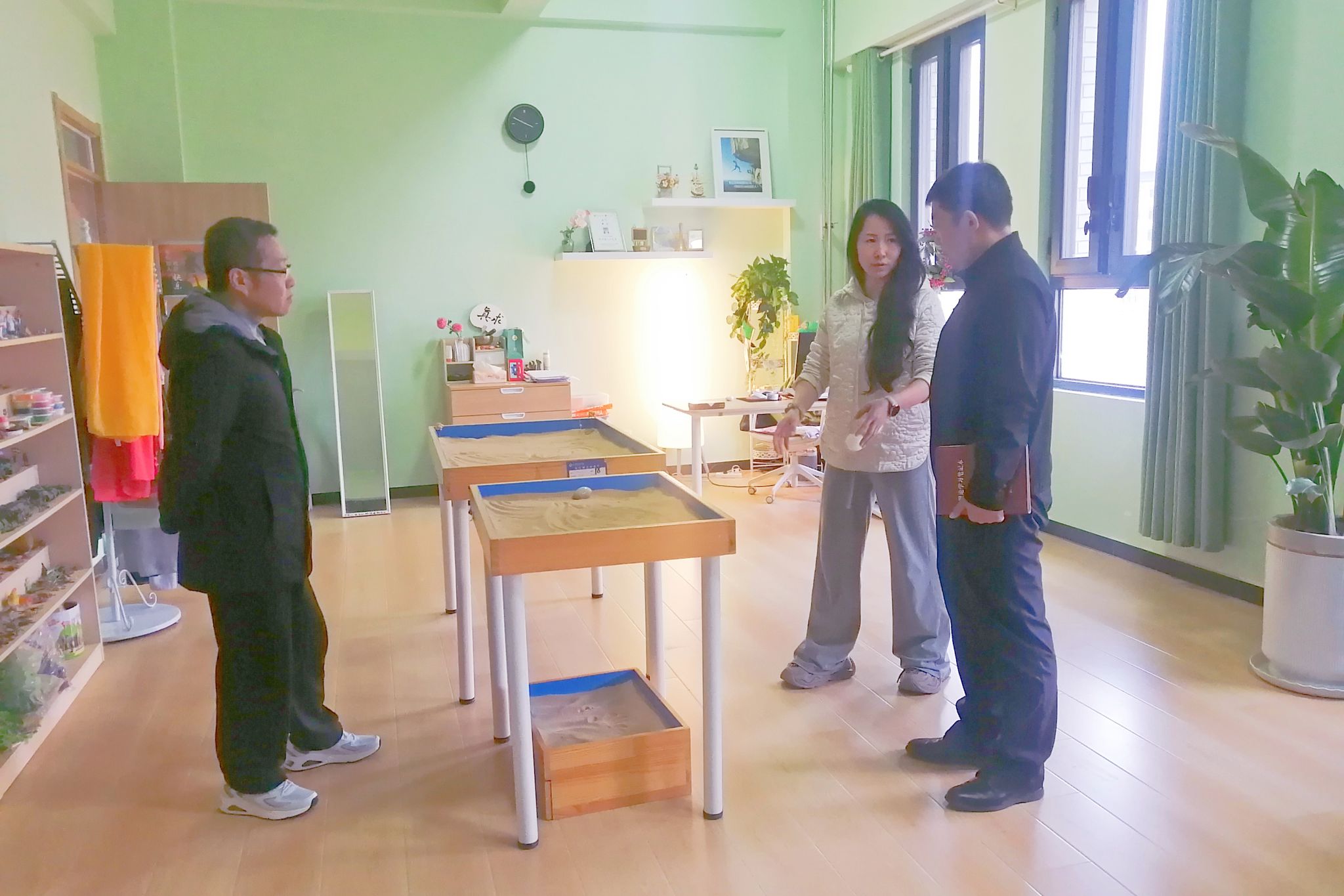 张建宽走访了“家校社医”系统家庭治疗室、个体心理咨询室、表达性艺术功能室、特色心理工作室(艺术疗愈体验室)和心理健康团体辅导室,调研了解了家、校、社、医协同育人实施情况,学生个体咨询预约流程、数量、效果等情况;现场体验了心理沙盘、音乐疗愈器械,并详细询问了相关设施设备的使用情况。