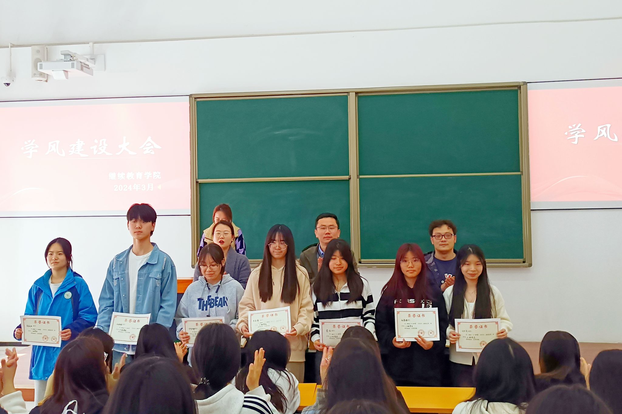 3月29日,继续教育学院召开2024年学风建设暨先进集体先进个人表彰大会,对2022-2023学年各方面综合表现优异、成绩突出的集体和个人进行表彰。继续教育学院直属党支部全体党员,继续教育学院2022级、2023全体学生参加。会议由支部宣传委员、2022级专职班主任车安安主持。