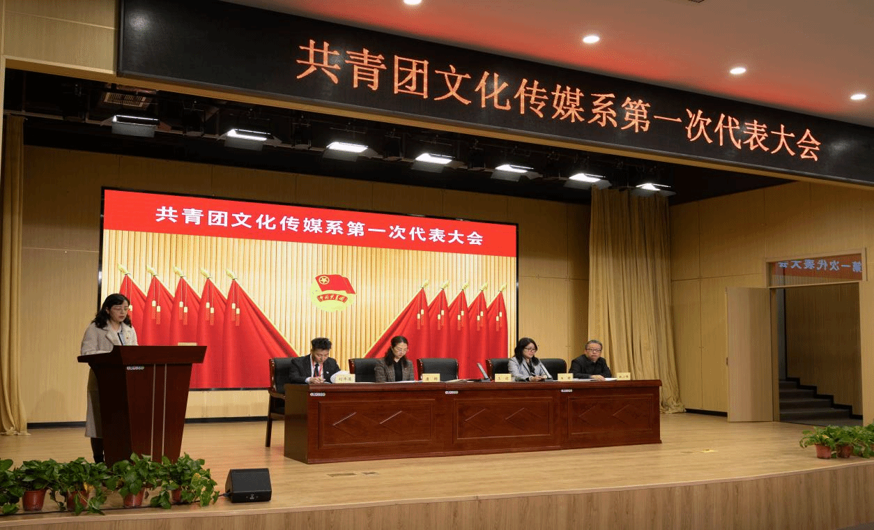 王珊代表校团委向大会致辞。刘泽原作了题为“青春奋进新时代,砥砺前行谱华章”的工作报告。王瑜在讲话中代表系党总支充分肯定了文化传媒系共青团过去三年富有成效的工作,面对新形势和新任务,希望全系团员青年志存高远,在坚定信仰中砥砺青春品格;全面发展,在建立新功中展现青春风采;团结奋进在服务校院发展中贡献青春力量。