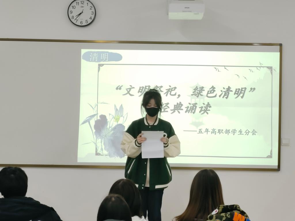 4月4日,五年制高职部举办“文明祭祀、绿色清明”经典诵读活动。
