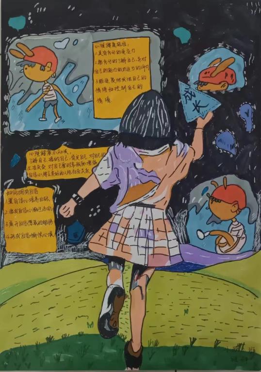 在收到80余幅作品中,同学们用笔墨抒写心情,用绘画表达美好,围绕心理健康知识,通过网络和书籍搜集资料、认真选题,精心设计、书写绘画,从不同的角度表达了自己对心理健康的认识,绘制出一幅幅图文并茂的心灵之作,展示自己的内心世界,抒发对成长、友谊、梦想、情绪、心理的感悟。手抄报作品主题鲜明,内容丰富,字迹工整清晰,设计美观新颖。
